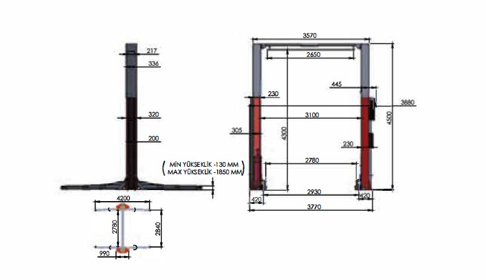 - Sütun yüksekliği : 4.500 mm (isteğe göre yapılır)